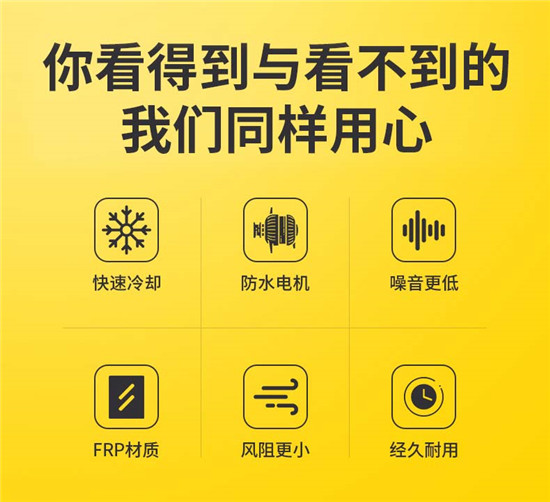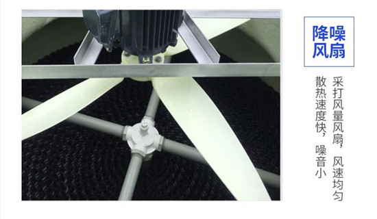 采用通風阻力小的填料和由清華大學專為冷卻塔設計的機翼型玻璃鋼高效風機,從而減小所配用的電機功率,超低噪聲型采用的電機功率更小,更節省電力,也可根據用戶的要求,配用雙速電機來節電。