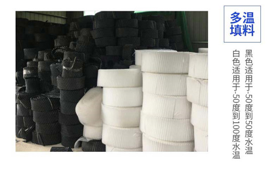 (2)填料:為改性聚氯乙烯雙向點波片,熱力性能好,氣流阻力小,剛性好,耐熱75℃、耐寒、阻燃。