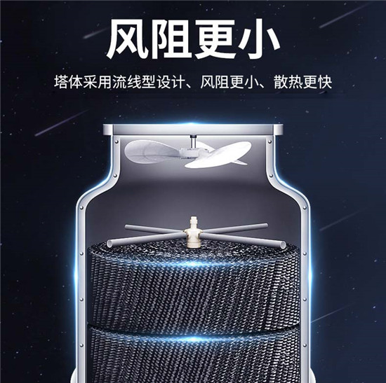 無填料噴霧式冷卻塔是一種新型的冷卻塔,相較于傳統型冷卻塔取消了填料,采用高效低壓離心霧化裝置將水噴射成微小霧滴,增大了傳熱面積,改善了冷卻效果,降低了運行及維護成本。