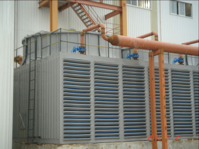 N系列方形逆流式玻璃冷卻塔是機械工業部第四設計研究院設計的節能型新產品。該產品應用了四院獲得的"節能型玻璃鋼冷卻塔"專利,特別是冷卻塔風機配有變扭矩離極雙速電機,當氣溫較低時(例如晚上),電機開低速,冷卻塔噪聲可低3-5dB(A)。